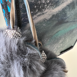 I am so happy and honored to be presenting a purse incorporating the ethereal, fluid, and gorgeous paint pour work of E Lorraine Art and Designs. The image titled Glacier 3 is the image you see here, front and back, on my creation.